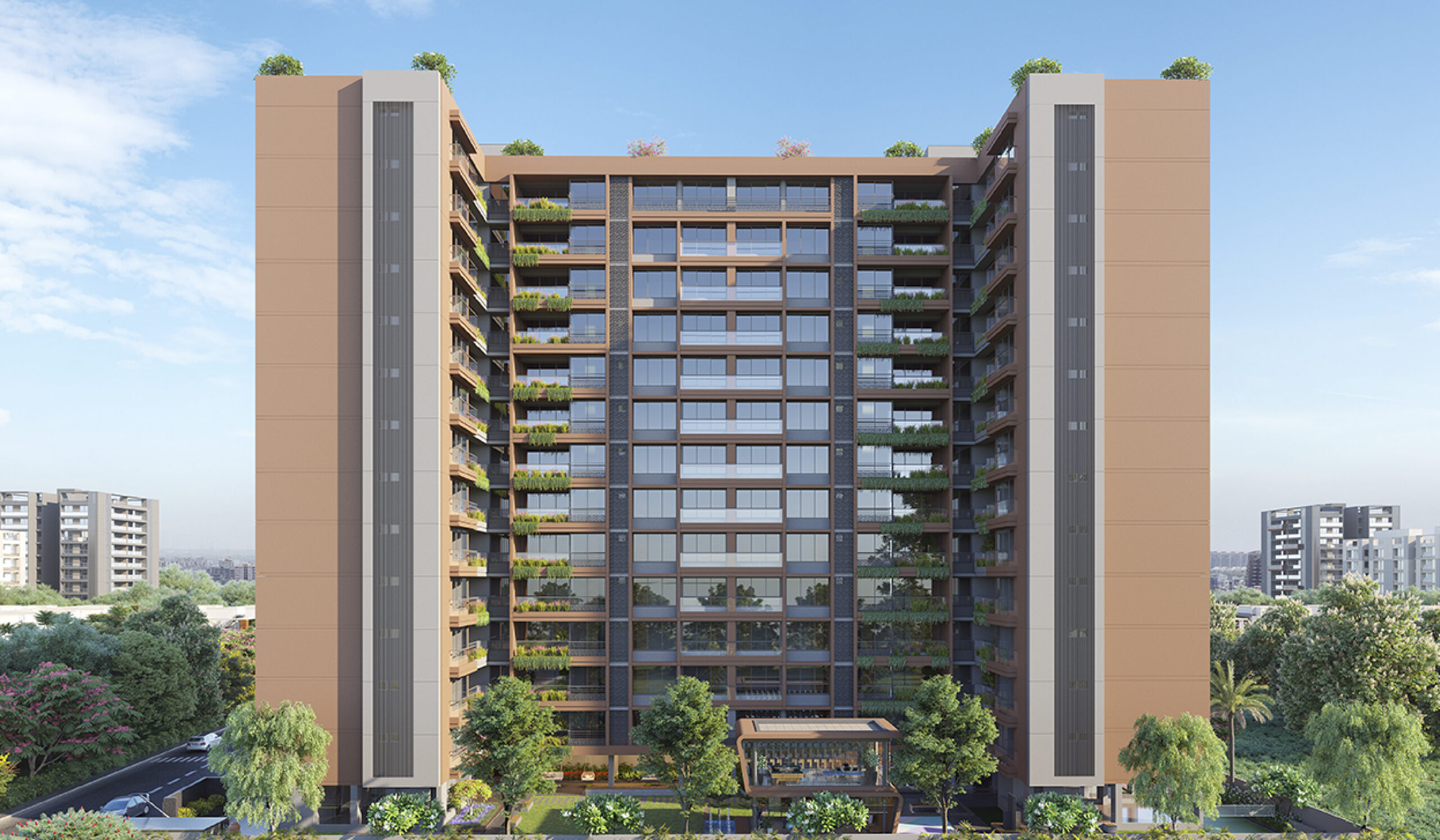 Vision Ventus is a premium residential project designed to offer modern and comfortable living spaces with high-quality construction and contemporary architectural standards. Located on Randesan Road, Gandhinagar, Gujarat, this project by Vision Creative Group spans 1,75,000 Sq.ft and is set for completion in July 2024.